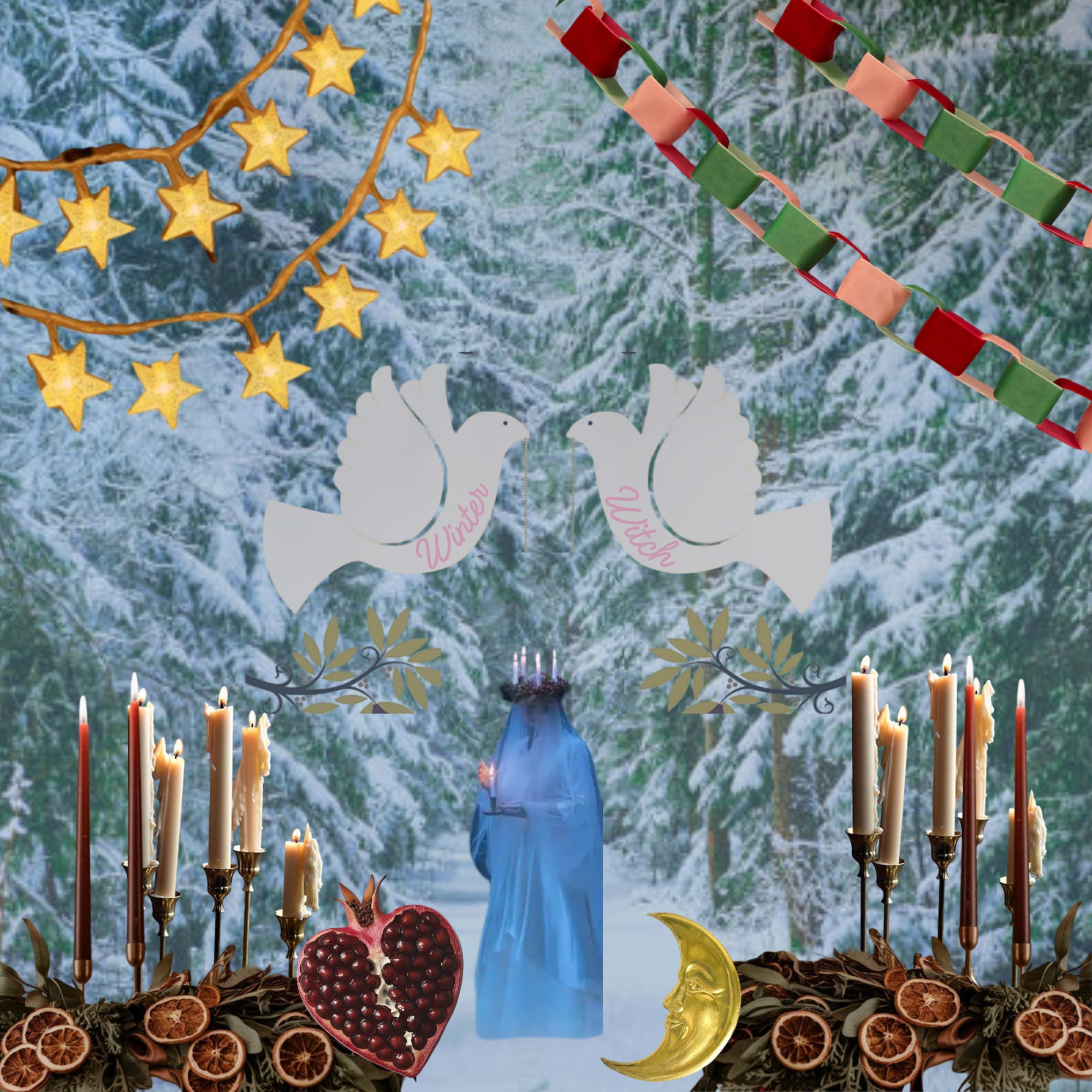 The lyrics touch on themes of Yule traditions; the process of the days getting shorter and the darkness surrounding us; honoring nature; the mythology of Persephone as she ventures to hell, and Artemis engulfed in a pine tree forest as she hunts (this one might also tie in with astrology, as both Artemis and Sagittarius are often seen with a bow and arrows). Similar to my WITCH playlist, I wanted this one to convey that being a witch is empowering, but this one is softer and much cozier.